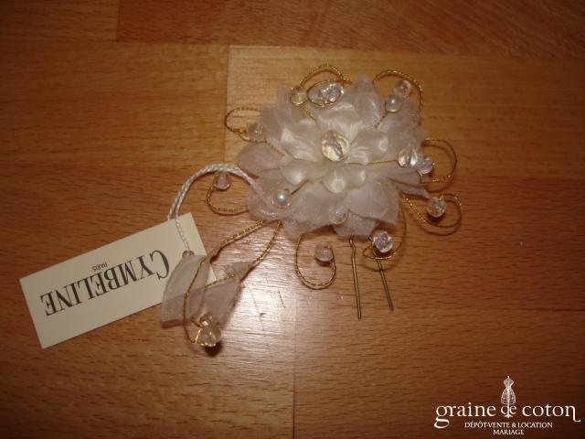 Fleur en organza de soie ivoire à coudre ou à monter sur peigne