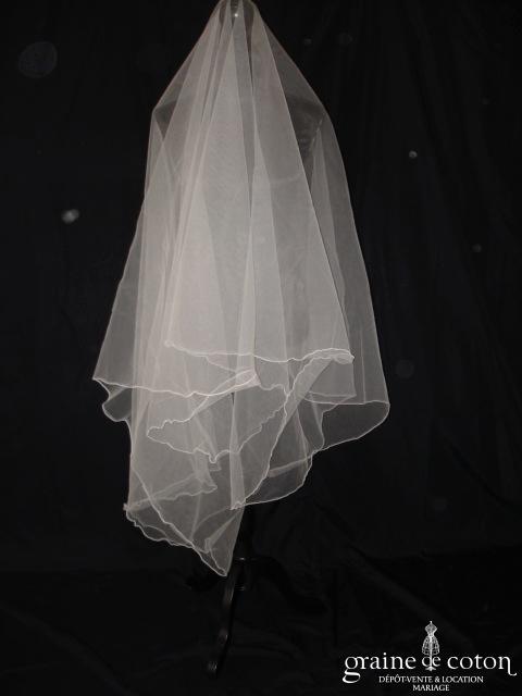 Voile long de 2,50 mètres en tulle souple. Monté sur peigne, sans rabat.