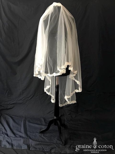 Odile Leonard – Voile mi long en tulle ivoire bordé de dentelle