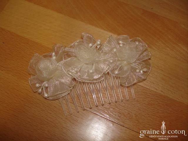 Fleur en organza de soie ivoire à coudre ou à monter sur peigne. 3 modèles au choix.