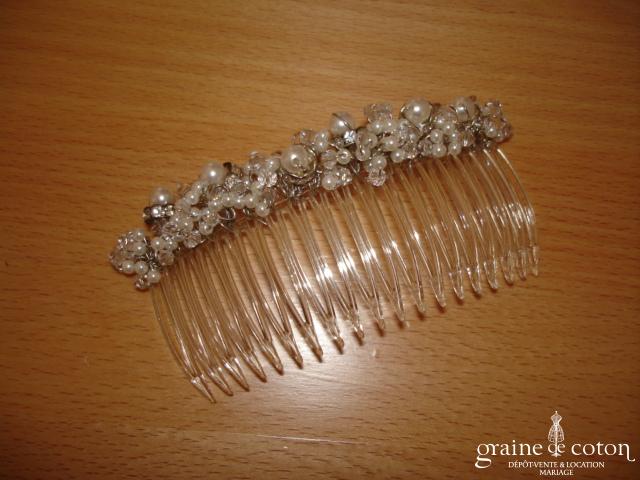 Peigne à cheveux avec fleurs en tissu, perles et strass ivoire