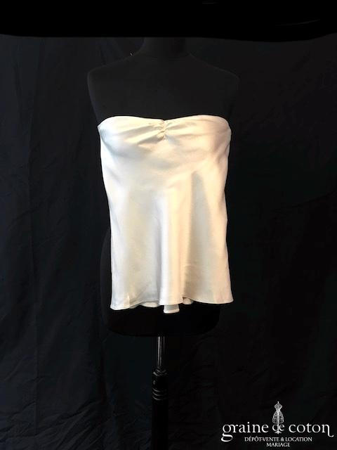 Boléro en organza de soie ivoire clair manches longues à porter ouvert sur l’arrière