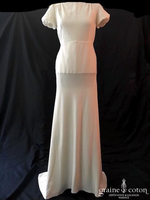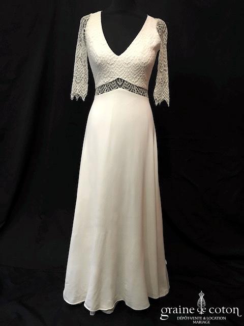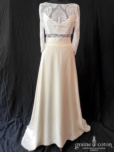 Boléro en mikado de soie ivoire clair avec dentelle et manches longues