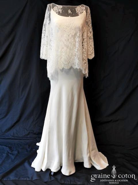 Boléro en organza de soie ivoire clair avec guipure de dentelle
