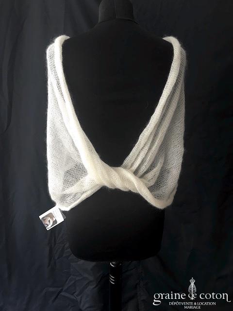 Boléro en organza de soie ivoire clair manches longues à porter ouvert sur l’arrière. Elégant et raffiné, un accessoire pour transformer votre tenue.