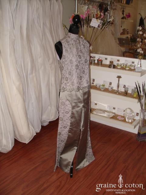 Carmélina créations – Ensemble gris et rose dentelle et soie