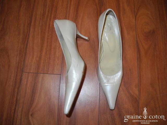 Escarpins en cuir ivoire, bouts pointus, talon de 6 cm.
