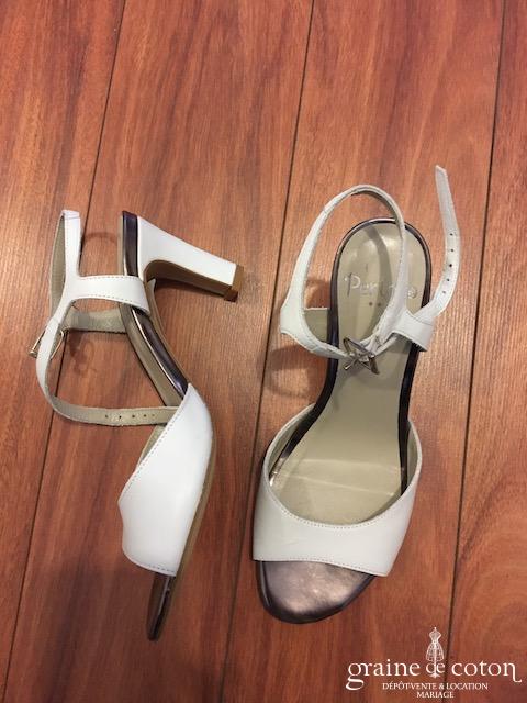 Sandales blanches en cuir avec lanière à la cheville. Talon de 5 cm.