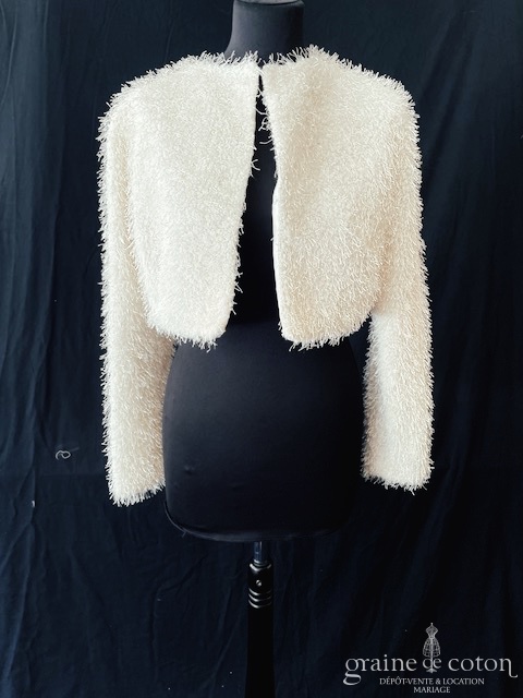 Manteau gilet en fausse fourrure ivoire, fermeture crochets.