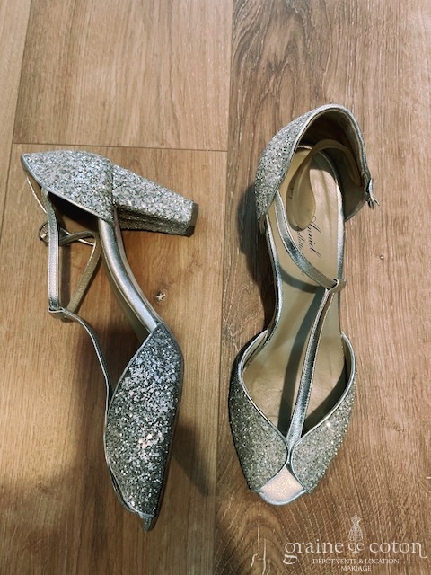 Salomés Butterfly paillettes dorées. Talon de 7,5 cm.