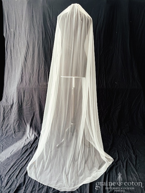 Voile long de 220 cm en tulle fluide bord brut. Monté sur peigne, sans rabat.
