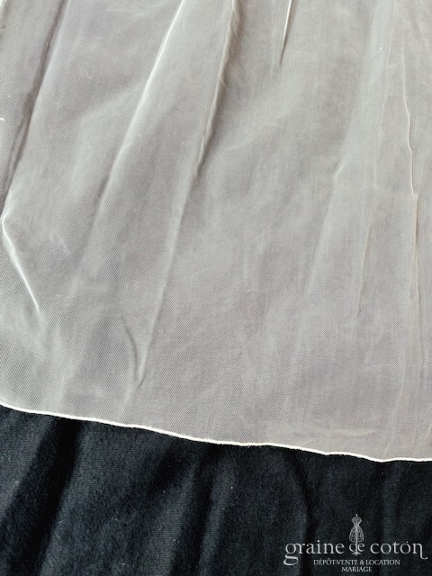 Voile long de 300 cm en tulle fluide nude. Monté sur peigne, avec rabat.