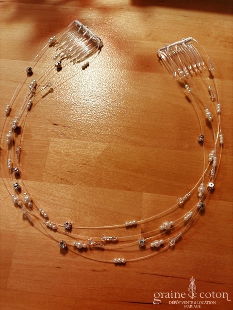 Double peigne perles nacrées ivoire et transparentes, pour une finition délicate et discrète de vos coiffures. A piquer autour d’un chignon ou sur le côté de la tête.