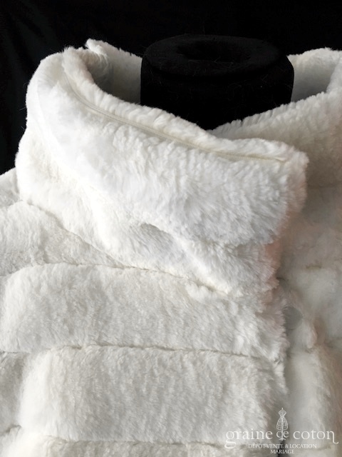 Boléro / manteau en fausse fourrure ivoire se fermant par 3 boutons au col. Manches longues et col montant.