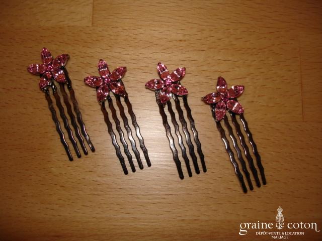 Cristaux montés sur un petit peigne à chignon, formant une fleur. Divers modèles disponibles.