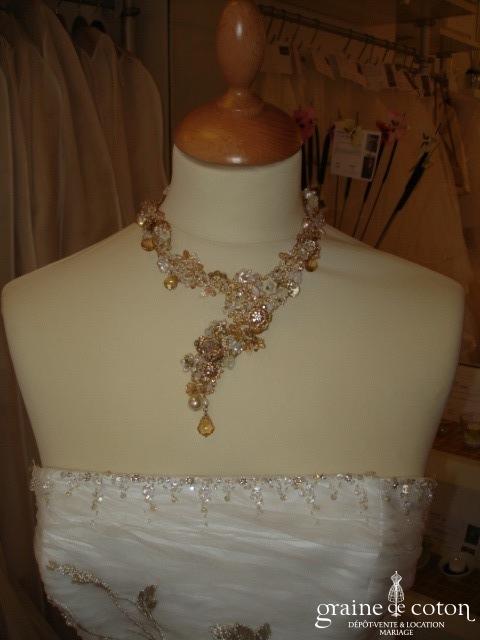 Savant mélange de fil doré et de perles feurs Swarovski. Fait main, modèle unique.