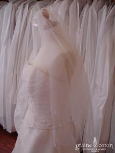 Voile court couleur ivoire, cousu de petites perles nacrées.