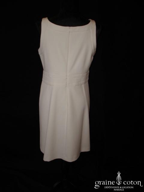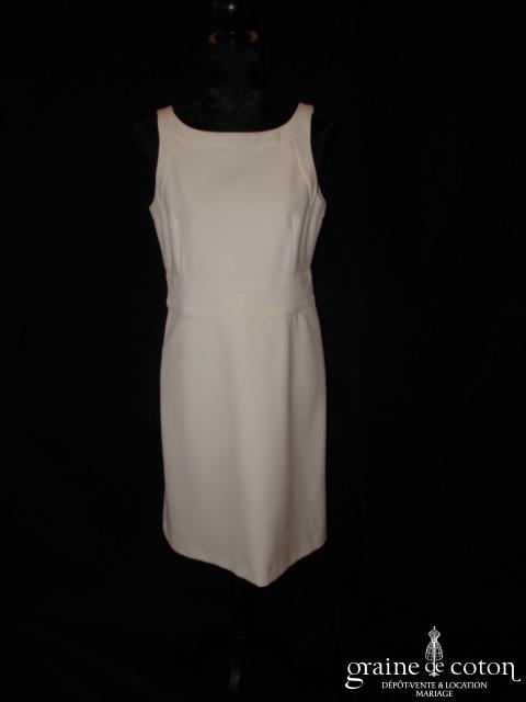 Robe une pièce en crêpe ivoire : encolure bateau, bretelles, jupe droite au genou. Élégante et sobre, idéale pour une cérémonie civile.