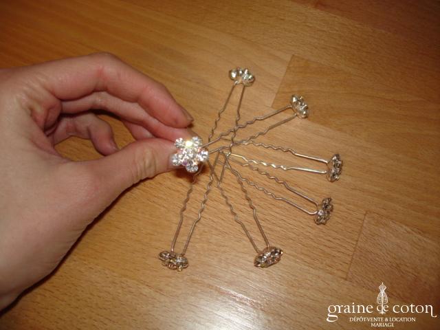 Lot de 7 pics à chignon forme fleur en strass.