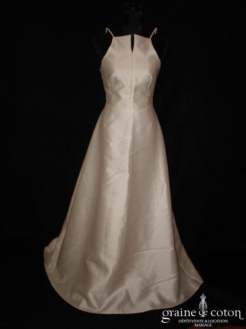 Mariées de Paris – Robe en mikado ivoire à encolure géométrique américaine