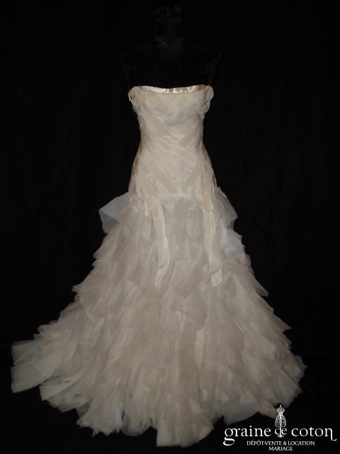 Mariées de Paris – Robe taille basse en mouchoirs d’organza ivoire