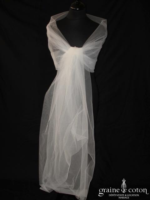 Étole en tulle ivoire à nouer en cache coeur ou en boléro derrière le dos. Dimensions : 120cm*300cm.