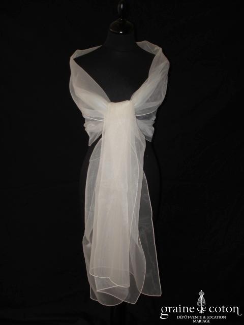 Étole en organza ivoire. Dimensions : 70 * 240 cm.