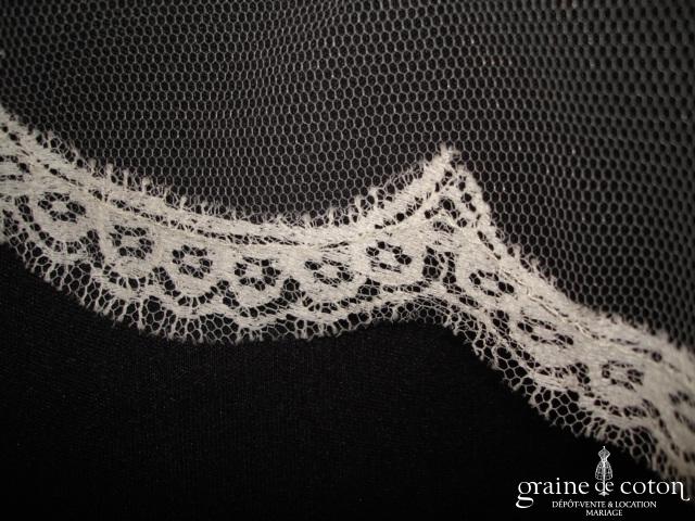 Elie Saab – Voile long en tulle rigide ivoire long de 3 mètres, bordé d’un fin galon de dentelle