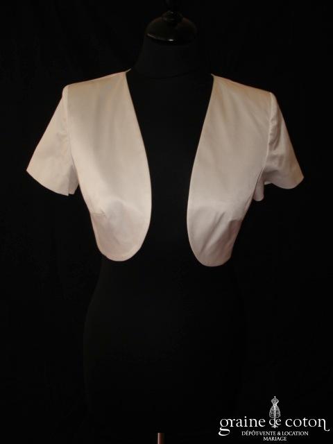 Boléro court en coton satiné blanc avec manches courtes. Très élégant.