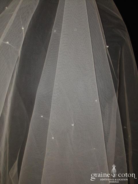 Voile en tulle ivoire perlé long de 3 mètres environ