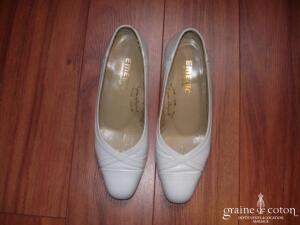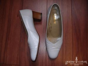 Escarpins fermés en cuit blanc, bout carré, talon carré de 4,5 cm.