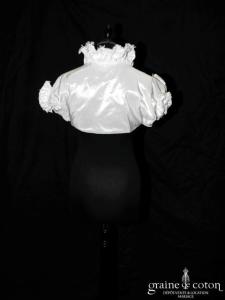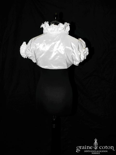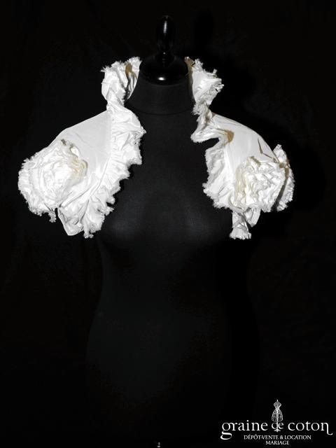 Boléro en taffetas ivoire avec 3 grosses fleurs du même tissu. Idéalement assorti à la robe Eolia référence 2088.