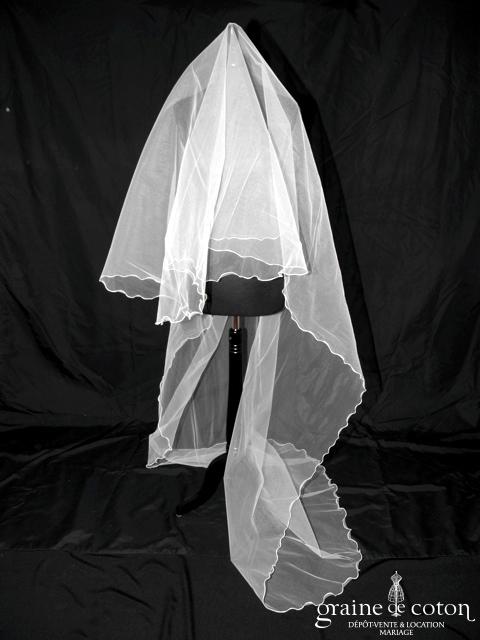 Voile long de 2,80 mètres en tulle ivoire , bord surjeté. Non monté sur peigne, à piquer dans la coiffure. Sobre et élégant.