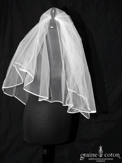 Voile mi long en tulle ivoire bordé d’un biais de satin