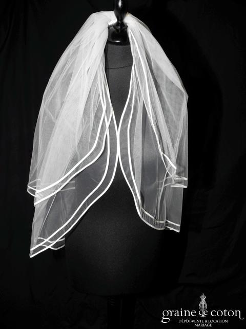 Voile court en tulle ivoire bordé d’un double biais de satin