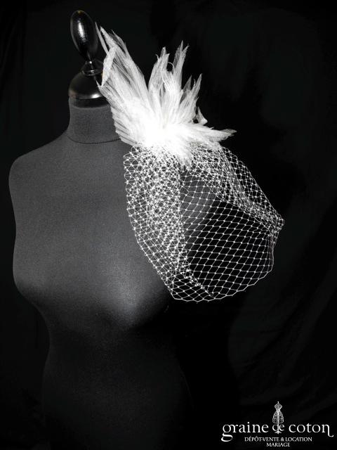 Coiffe fleur avec voilette ivoire. Montée sur peigne.