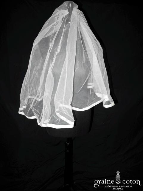 Voile court (milieu du dos) en tulle ivoire bordé d’un biais d’organza. Monté sur pics.
