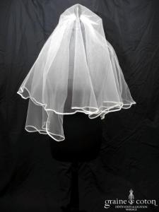 Voile court en tulle ivoire bordé d’un biais de satin.