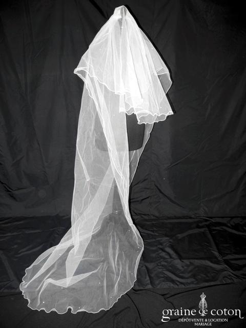 Voile long en tulle blanc avec strass sur les bords. Monté sur peigne. Longueur avec rabat : 2,50 m.