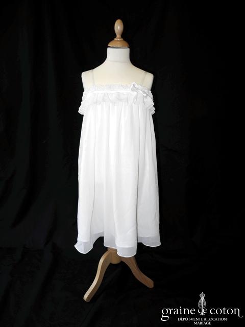 Robe de petite fille d’honneur en mousseline ivoire avec fines bretelles.