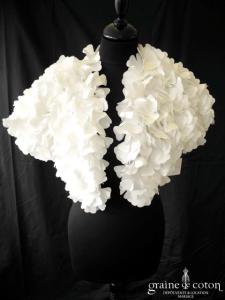 Cape formée d’une multitude de petites fleurs dont les pétales forment comme des coeurs en tissu ivoire, petites manches.