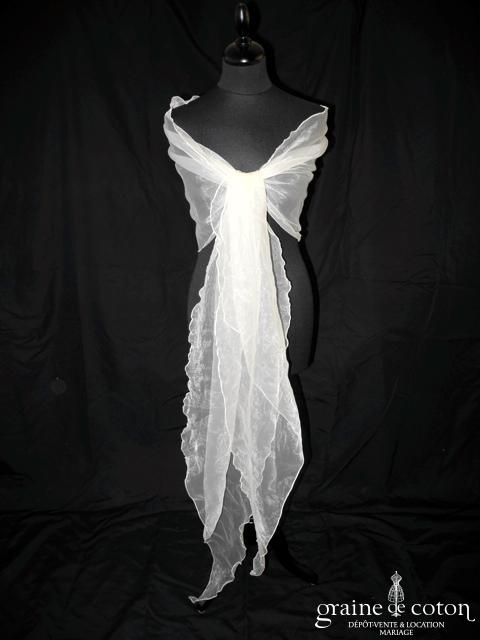 Étole en organza champagne, bouts en pointes. Dimensions : 50*320 cm.