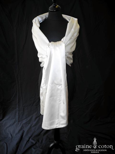 Étole en satin ivoire, entièrement doublée du même tissu. Dimensions : 70*240 cm. Idéalement assortie à la robe n°2357.
