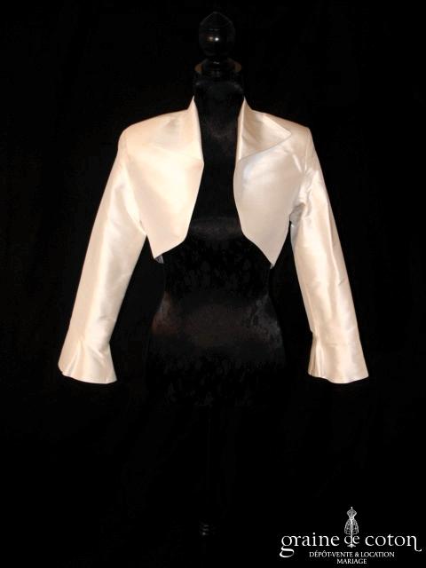 Boléro court en soie sauvage ivoire, manches 3/4 forme « trompette ».