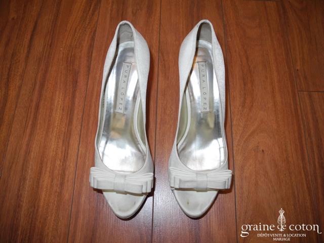 Pura Lopez – Escarpins ivoires en satin de soie avec noeud