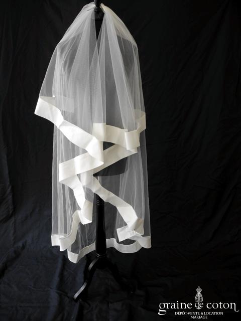 Pronovias – Voile long de 1,50 mètres en tulle ivoire bordé d’un large biais en organza