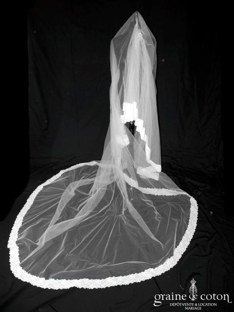 Voile long de 3 mètres en tulle ivoire clair bordé d’un galon de dentelle