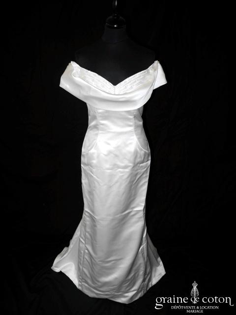 Pronuptia – Robe droite en satin ivoire à encolure sur les épaules