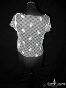 Catherine Puget – Boléro manches courtes en tulle ivoire brodé de fleurs