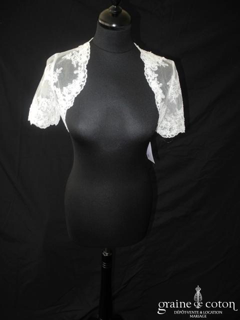 Bianco Evento – Boléro en dentelle ivoire, manches courtes